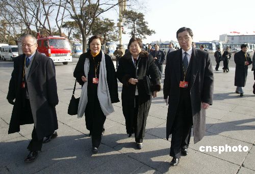三月四日,十屆全國人大三次會議在北京召開預備會議,全國人大代表、香港特別行政區(qū)立法會主席范徐麗泰(左二)與其他香港代表步入人民大會堂。作者:廖文靜