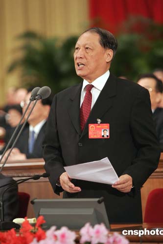 十屆全國人大三次會議第二次全體大會三月八日在北京人民大會堂舉行,成思危副委員長主持會議。作者:毛建軍