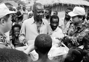 利比里亞地處西非,原是一個(gè)美麗富饒的國度。然而,長達(dá)14年的內(nèi)戰(zhàn),使這個(gè)苦難的國家政局動蕩、戰(zhàn)亂困擾、經(jīng)濟(jì)近乎崩潰。2003年11月,奉國務(wù)院、中央軍委命令,以福州總醫(yī)院醫(yī)務(wù)人員為主體組建的南京軍區(qū)首支赴利比里亞維和醫(yī)療分隊(duì)成立。這支包括32名男隊(duì)員和11名女隊(duì)員的醫(yī)療分隊(duì),有外科、內(nèi)科、眼科、牙科以及麻醉、藥劑、檢驗(yàn)、放射醫(yī)師和重癥監(jiān)護(hù)護(hù)士、手術(shù)護(hù)士、衛(wèi)生員,還有駕駛員、通信技師、水電工、廚師等保障人員。