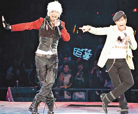 中新網(wǎng)3月11日電 據(jù)《東方日報(bào)》報(bào)道,古巨基演唱會前晚邀請了郭富城做嘉賓,兩人在臺上斗跳勁舞,掀起全場高潮,基仔還笑言在城城身上“采陽補(bǔ)陰”,學(xué)成一身舞技,城城搞笑回應(yīng):“怪不得我現(xiàn)在變的這么瘦了”令全場大笑。