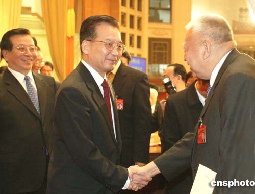 三月十二日,全國政協(xié)十屆三次會議在北京閉幕。國務(wù)院總理溫家寶、國家副主席曾慶紅向新增選的全國政協(xié)副主席董建華表示祝賀。作者:廖文靜
