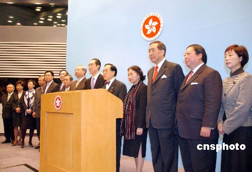 隨著,曾蔭權(quán)率香港政制專責(zé)小組其他兩位成員律政司司長(zhǎng)梁愛詩和政制事務(wù)局局長(zhǎng)林瑞麟再次與記者見面。