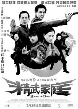 中新網(wǎng)3月15日電 據(jù)北京娛樂信報(bào)報(bào)道,2005年以來(lái),首部港產(chǎn)引進(jìn)內(nèi)地的動(dòng)作大片《精武家庭》將在本月24日全面出擊內(nèi)地市場(chǎng),這部電影不僅匯集了黃秋生、馮德倫、吳彥祖、TWINS、王敏德、何超儀等超強(qiáng)的明星陣容,而且還請(qǐng)來(lái)了動(dòng)作大師袁和平出任動(dòng)作導(dǎo)演。