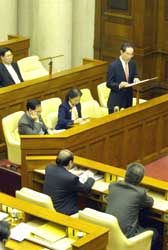 圖:唐英年在立法會(huì)提交財(cái)政預(yù)算案