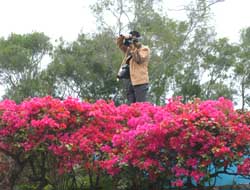 香港海洋公園的杜鵑花盛開﹐吸引著內(nèi)地游客拍攝。作者:趙振清