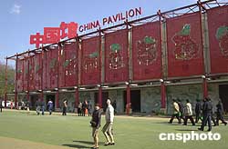 由于中國(guó)上海是下屆世博會(huì)的主辦地,位于愛(ài)知世博會(huì)主會(huì)場(chǎng)長(zhǎng)久手會(huì)場(chǎng)東北角一號(hào)國(guó)際展區(qū)的中國(guó)館備受矚目。遠(yuǎn)遠(yuǎn)望去,展館正面外壁上,用紅色材料裝點(diǎn)的中國(guó)傳統(tǒng)十二生肖圖案和“中國(guó)館”三個(gè)大字分外醒目,九條盤(pán)旋的青龍雕墻和側(cè)壁上的百家姓浮雕也獨(dú)樹(shù)一幟。