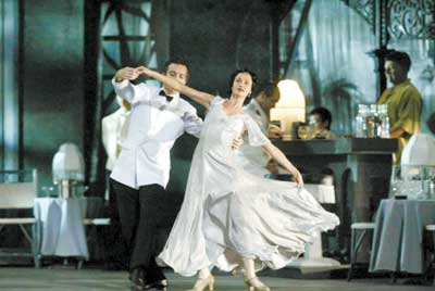 演出的開(kāi)場(chǎng)很新鮮,一面虛擬的大幕徐徐拉開(kāi),巨大的銀幕上出現(xiàn)了當(dāng)年那部老電影《卡薩布蘭卡》的片頭,黑白鏡頭將觀眾帶回到半個(gè)世紀(jì)前發(fā)生一段浪漫故事的卡薩布蘭卡。因?yàn)槭鞘状魏铣膳啪,多?shù)演員沒(méi)有穿演出服。盡管如此,演員們的精彩表演還是贏得了在場(chǎng)記者的掌聲。(張學(xué)軍)