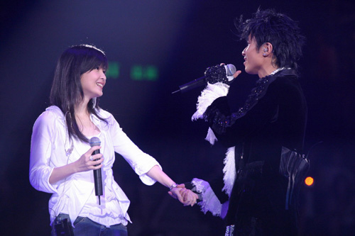 中新網(wǎng)4月8日電 據(jù)香港《大公報(bào)》報(bào)道,古巨基演唱會(huì)前晚于紅館揭幕,當(dāng)晚最難得就是“基仔”請(qǐng)來好友周慧敏(vivain)助陣。vivain最初只是座上客,沒想到“基仔”借助觀眾的威力把她拉出場,二人合唱一曲《流言》,贏盡觀眾掌聲。