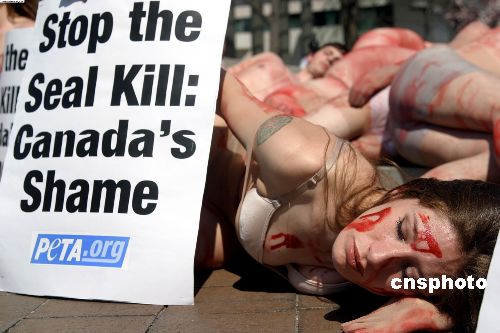 圖:動物保護(hù)組織抗議加拿大獵殺海豹