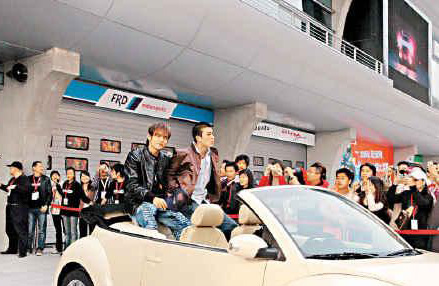 據(jù)香港媒體報(bào)道,眾演員中午時(shí)分抵達(dá)上海,首先舉行記者會(huì),之后到上海F1賽車場(chǎng)欣賞賽車及飄移表演,眾演員欣賞過四位國(guó)際級(jí)賽車飄移高手表演,之后大會(huì)安排周杰倫、陳冠希、鈴木杏坐開篷車出場(chǎng),車迷更加瘋狂,蜂擁上前希望一睹偶像風(fēng)采,場(chǎng)面熱鬧。