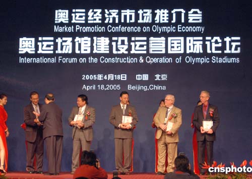 “奧運場館建設運營國際論壇”四月十八日在北京飯店隆重舉行,北京市副市長張茅在開幕式上開通“奧運經濟網站”。這是繼二00四年北京“奧運經濟市場推介會”成功舉辦之后的又一次大型奧運商機推介活動。作者:徐曦弋