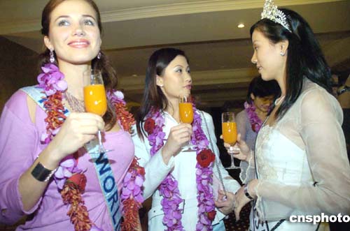 由鳳凰衛(wèi)視組織的“鳳凰有約——情系印度尼西亞送愛心”赴印度尼西亞親善訪問(wèn)團(tuán),4月17至20日在印度尼西亞展開災(zāi)區(qū)親善探訪活動(dòng)。圖為2004年世界小姐Miss Maria Garcia Mantilla (左)、2004年中華小姐李詩(shī)琪(中)與印度尼西亞小姐一起為災(zāi)區(qū)送愛心。作者:洪少葵