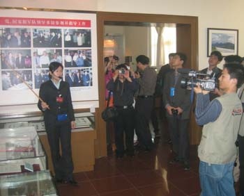 4月18日,陽光明媚,花俏枝頭,春意盎然!镑攘ι綎|游——中國網(wǎng)絡(luò)媒體山東行”采訪團來到素有“江北水城”之稱的聊城。中國網(wǎng)絡(luò)媒體山東行采訪團記者參觀了坐落在碧波蕩漾、風(fēng)光秀麗的聊城東昌湖畔的孔繁森紀(jì)念館,仔細參觀了孔繁森同志事跡展覽,采訪團記者代表還向孔繁森紀(jì)念館敬獻了花籃。
