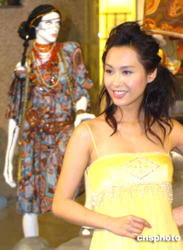 香港女星朱茵20日出席在香港時(shí)代廣場舉行的05春夏潮流展覽﹐展示窈窕身材。作者:趙振清