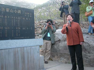 在《沂蒙山小調(diào)》誕生紀(jì)念地白石屋村,“魅力山東游——中國網(wǎng)絡(luò)媒體山東行”采訪團記者了解了《沂蒙山小調(diào)》誕生過程后,深受感動,在中共費縣縣委常委、宣傳部長李云凌領(lǐng)唱下,一同唱起《沂蒙山小調(diào)》,接受了一次傳統(tǒng)的革命教育。
