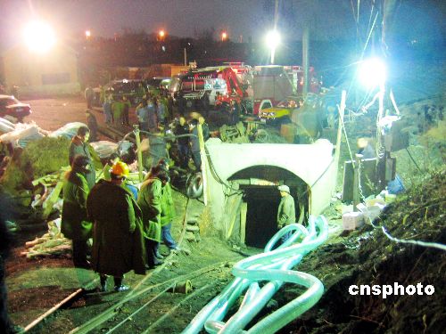 目前,事故現(xiàn)場成立了吉林省、吉林市、蛟河市三級搶險指揮部,搶救工作正分兩方面同時進(jìn)行,一是堵塞吉安煤礦透水點,同時組織騰達(dá)煤礦緊急抽水,營救被困礦工。