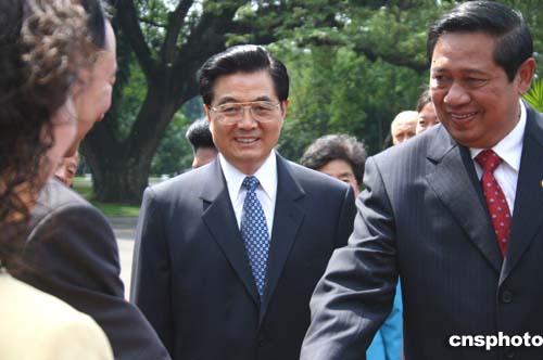 中新網(wǎng)雅加達(dá)四月二十五日電(記者李靜)中國(guó)國(guó)家主席胡錦濤二十五日在雅加達(dá)與印尼總統(tǒng)蘇希洛舉行會(huì)談。雙方共同簽署《聯(lián)合宣言》,宣布建立中國(guó)與印尼戰(zhàn)略伙伴關(guān)系。