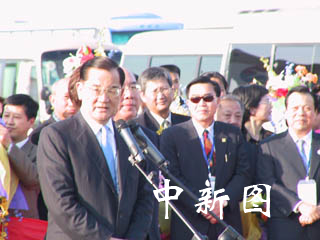 連戰(zhàn)一行乘機(jī)于今天下午四點(diǎn)四十分抵達(dá)南京祿口機(jī)場,受到熱烈歡迎。隨后連戰(zhàn)在機(jī)場停機(jī)坪三十米的紅地毯中央向中外記者發(fā)表了講話。