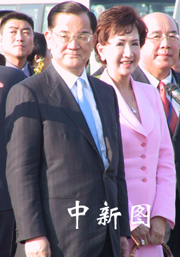 連戰(zhàn)夫人方瑀一下飛機,就在麥克風(fēng)面前輕聲感嘆:晴空萬里。欣喜之情溢于言表。