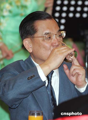 以中國國民黨主席連戰(zhàn)為首的中國國民黨大陸訪問團四月二十七日晚在南京夫子廟狀元酒樓酒店品嘗秦淮風味小吃,觀賞民族音樂表演。作者:毛建軍