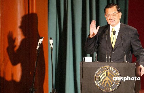 學(xué)生:您好,我是來自北京大學(xué)政府管理學(xué)院的碩士生,我們北大學(xué)子對您的大陸之行一直非常期待,記得在4天前當(dāng)您乘坐的飛機(jī)剛剛降落在南京的祿口機(jī)場時您曾發(fā)表感言,真是有一種相見恨晚的感覺,剛才您也提到現(xiàn)今的大陸已經(jīng)跟您的記憶完全不吻合了,請問在時隔將近60年的時間,當(dāng)您再踏上大陸的土地時,您眼前見到的和您記憶及想象有什么最大的不同?謝謝。