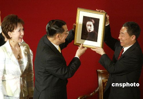 中新網(wǎng)4月29日電 中國國民黨主席連戰(zhàn)在北大演講結(jié)束后,北京大學(xué)校務(wù)委員會教授李云放教授向連戰(zhàn)贈送兩件具有特殊意義的北京大學(xué)的紀念品。連戰(zhàn)并向北京大學(xué)回贈了禮物。