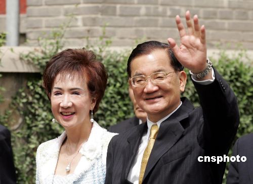 二零零五年四月二十九日,中國(guó)國(guó)民黨主席連戰(zhàn)在北京大學(xué)演講后,攜夫人參觀母親趙蘭坤當(dāng)年在燕京大學(xué)就讀時(shí)曾住過的靜園六院中的一院。圖為連戰(zhàn)在院外接受記者采訪時(shí)高度稱贊北大學(xué)子。作者:武仲林