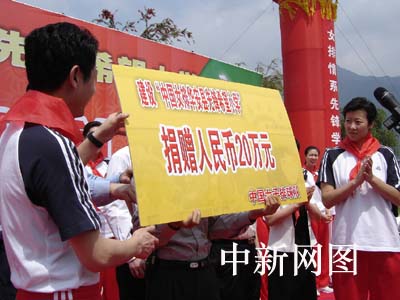 當天上午,在同學們的夾道歡迎中,中國女排隊員來到先鋒小學。主教練陳忠和和中國女排隊長馮坤把寫著20萬元人民幣的支票捐獻給先鋒小學師生。中國女排領隊李全強、主教練陳忠和和漳州市委副書記、組織部長鄭棟梁、市委常委、宣傳部長林曉峰一起為希望小學奠基揭幕,全體女排隊員為奠基培土。
