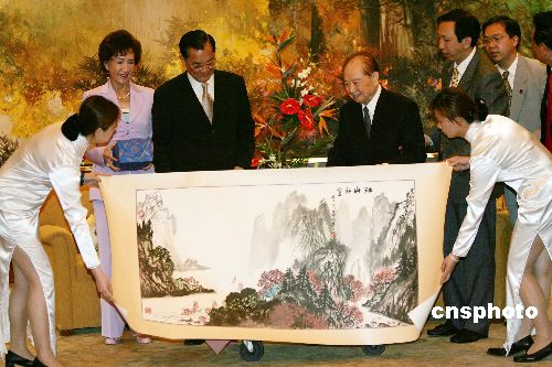 會見中,汪會長向連戰(zhàn)主席贈送了北京一位九十多歲的名畫家秦云嶺所畫的《江山如畫》及一九八三年與一九九六年在大陸出版的連老先生兩本著作;連主席轉交了辜振甫夫人的一封信給汪會長,并向他贈送了辜先生年青時代居住陽明山俯瞰紗帽山所創(chuàng)作的一幅油畫的復制品、臺灣琉璃名家王俠軍作品《宏圖》以及祖父連橫先生名作《臺灣通史》與他個人著作《改變,才有希望》。