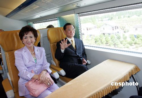磁懸浮列車(chē)剛一發(fā)動(dòng),訪問(wèn)團(tuán)的成員們與上百名海內(nèi)外記者就體驗(yàn)到飛快加速的感覺(jué)。連戰(zhàn)與夫人連方瑀端坐在貴賓車(chē)廂的最前排,兩人始終面帶微笑,還不時(shí)親密交談著感受,連戰(zhàn)時(shí)而也倚在靠窗的坐位上,饒有興味的望著窗外飛速而過(guò)的風(fēng)景。