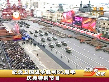 5月9日,俄羅斯在莫斯科紅場舉行紀(jì)念衛(wèi)國戰(zhàn)爭勝利60周年慶典。(央視截圖)