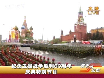 5月9日,俄羅斯在莫斯科紅場舉行紀(jì)念衛(wèi)國戰(zhàn)爭勝利60周年慶典。(央視截圖)