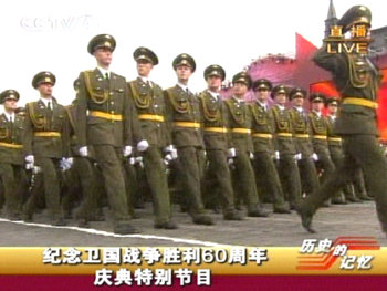 5月9日,俄羅斯在莫斯科紅場舉行紀(jì)念衛(wèi)國戰(zhàn)爭勝利60周年慶典。(央視截圖)