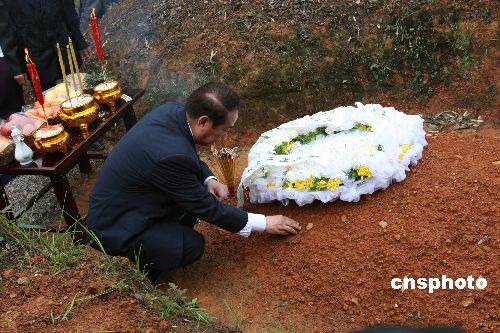祭拜禮成后,宋楚瑜跪拜在曾祖父墓前,掬起一捧黃土。他要將自己滿腔的情感化作這深情的一捧,讓濕潤的黃土同他此刻濕潤的心一起裝進杯子,帶回臺灣永久收藏。