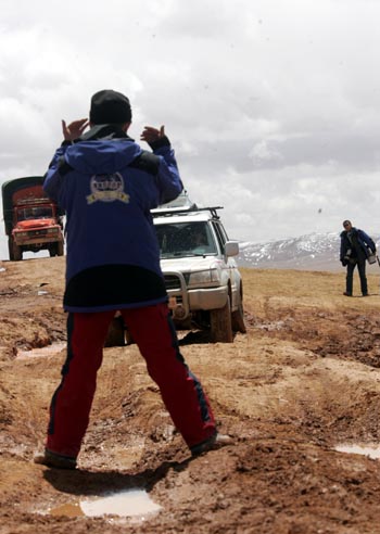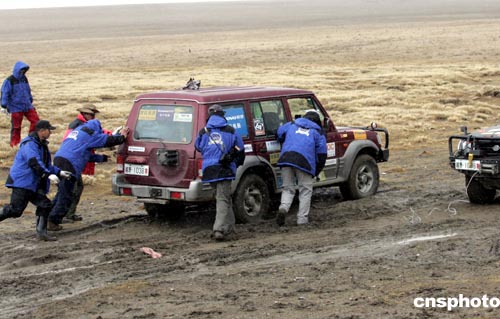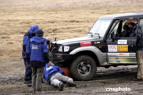 五月七日探險隊曲尼駛往班戈遭遇陷車(圖)