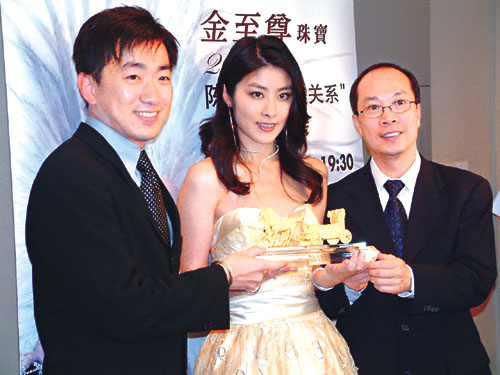 中新網(wǎng)5月11日電 據(jù)香港《大公報》報道,陳慧琳今年內(nèi)地巡回演唱會的第一站圈定上海,昨日更專程到上海出席記者會。身穿金色低胸裙的Kelly佩戴過百萬鉆飾,明艷照人,更獲贊助商贊助一套新馬車作演出之用。