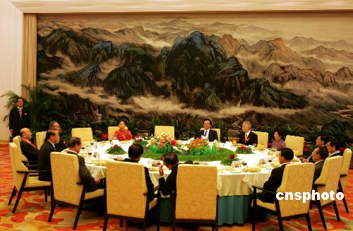 五月十一日晚,中共中央政治局常委曾慶紅在北京人民大會(huì)堂宴請(qǐng)親民黨主席宋楚瑜一行。作者:任晨鳴