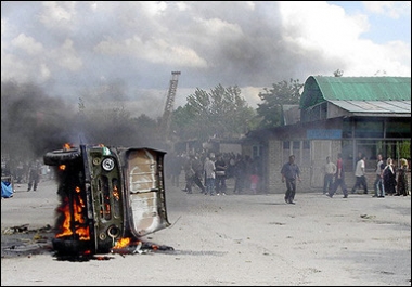 在另一個邊境城鎮(zhèn)Korasu,街道上遍布警車燒焦后的殘骸,以及從已被焚毀的政府辦公室里灑出的文件。