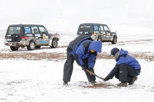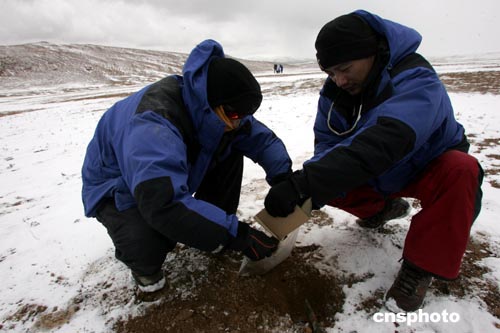探險隊(duì)為環(huán)境保護(hù)科考項(xiàng)目采集土壤標(biāo)本(圖)