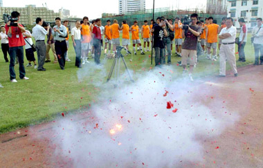 中新網(wǎng)5月17日電 今天下午四時(shí),深圳健力寶俱樂部做出決定,宣布解除遲尚斌球隊(duì)主教練職務(wù),由郭瑞龍出任教練組組長(zhǎng)。在深足總經(jīng)理?xiàng)蠲托剂巳蚊⒑螅^看球隊(duì)訓(xùn)練的球迷中有人放鞭炮慶祝。