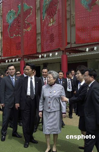 中新社愛知五月十九日電(記者 王健 滕劍峰)二00五年愛知世博會中國館館日開幕式今天在愛知縣名古屋市世博園隆重舉行,中國副總理吳儀、中國駐日本大使王毅、中國貿(mào)促會會長萬季飛、日本經(jīng)濟產(chǎn)業(yè)大臣中川昭一、日本前首相橋本龍?zhí)、日本世博會協(xié)會會長豐田章一郎等出席。