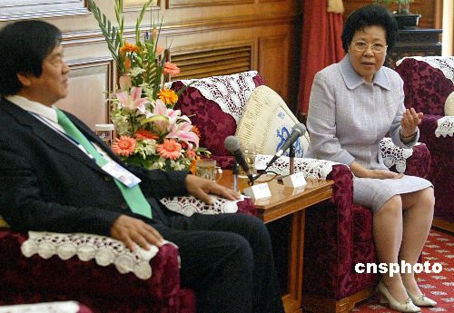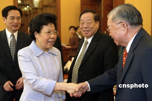 五月十九日,國(guó)務(wù)院僑務(wù)辦公室主任陳玉杰在北京會(huì)見(jiàn)了參加二○○五北京《財(cái)富》全球論壇的華商代表。作者:廖文靜