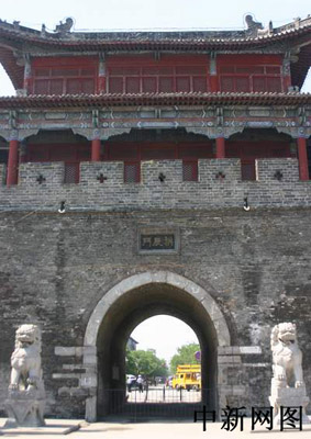城池內(nèi)方外圓,形似古錢(qián)。磚城周長(zhǎng)7.25華里。城門(mén)為拱券式,至今保存完好。原城門(mén)外,還各有一甕城,甕城成半圓形,城門(mén)于正門(mén)不相沖,北門(mén)向西,東門(mén)和西門(mén)向南,南門(mén)向東,所以商丘古城古有“四門(mén)八開(kāi)”之說(shuō)。