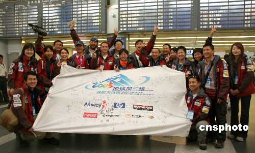 | “2005地球第三極珠峰大行動(dòng)”五月二十日從北京啟程。三十三名志愿者從首都機(jī)場(chǎng)出發(fā)前往西藏拉薩,他們將和西藏登山隊(duì)專業(yè)隊(duì)員、當(dāng)?shù)馗呱絽f(xié)作一起,克服珠峰地區(qū)高寒、狂風(fēng)、缺氧、低壓等惡劣的自然環(huán)境,對(duì)存留在珠穆朗瑪峰海拔5120米大本營(yíng)至海拔8000米之間的登山廢棄物進(jìn)行全面清理。作者:陸媛