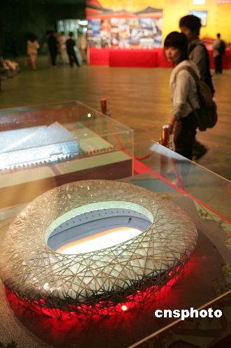 圖:日本愛知世博會(huì)中國館內(nèi)展示北京奧運(yùn)場館設(shè)計(jì)