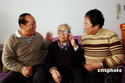 | 一九九一年回到日本居住的日本遺孤杜冬梅,因不忍中國的養(yǎng)母在長春無人照顧,現(xiàn)在又回到了中國養(yǎng)母身邊。她說,我當(dāng)時(shí)遺留在中國時(shí)曾患有淋巴結(jié)核,下巴淌著膿,是養(yǎng)父母收養(yǎng)我并給我一次次治病,后來又供我上了大學(xué),沒有養(yǎng)父母對(duì)我的愛,也許我早就死了。據(jù)資料記載,在中國東北日本侵華戰(zhàn)爭后留下了大約五千名日本遺孤。圖為杜冬梅和丈夫與養(yǎng)母于世芳聊天逗笑。作者:王麗南