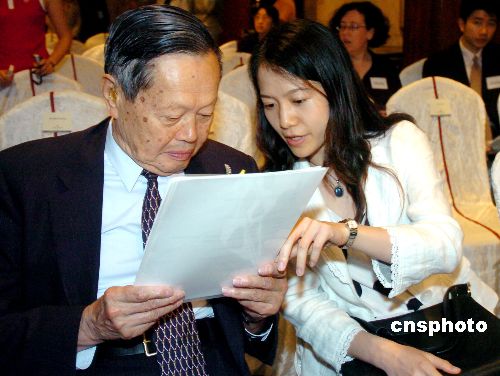 楊振寧夫婦三日在香港參加“2005邵逸夫獎”新聞發(fā)布會上親密交流。新聞發(fā)布會上楊振寧夫婦備受香港記者關(guān)注。作者:宋吉河