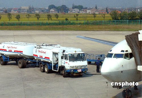 | 2005年6月3日,據(jù)民航總局披露,中國三大航空公司——國航、東航、南航提出的在機(jī)票中增加燃油附加費(fèi)的申請被有關(guān)部門正式駁回。上月中旬,國航、東航、南航三大航空巨頭共同向國家發(fā)改委申請了征收約占機(jī)票價(jià)格10%的燃油附加費(fèi)。民航總局有關(guān)負(fù)責(zé)人表示,盡管目前燃油價(jià)格居高不下,但由于2004年4月份《民航國內(nèi)航空運(yùn)輸價(jià)格改革方案》中已經(jīng)明文取消了燃油附加費(fèi),因此三大航空公司的申請不被接受。圖為寧波櫟社機(jī)場一輛加油車正在為飛機(jī)加油。作者:張和平