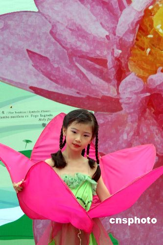 六月四日,“第五屆澳門荷花節(jié)”在“龍環(huán)葡韻”揭幕,千姿百態(tài)的各種荷花吸引?多游人,小朋友在揭幕式上表演助興。作者:梁永強