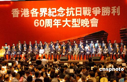 全國政協(xié)副主席董建華,中聯(lián)辦主任高祀仁、副主任李剛,香港特區(qū)政府律政司司長(zhǎng)梁愛詩,外交部駐港特派員楊文昌,解放軍駐港部隊(duì)司令員王繼堂、政委劉良凱,二百位抗日老戰(zhàn)士和名將之后,以及香港各界人士約二千人出席晚會(huì)。